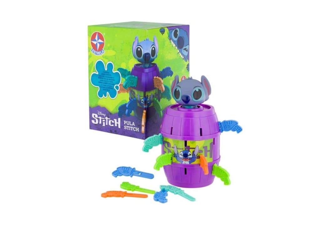 Um jogo interativo, dinâmico e cheio de surpresas inspirado no carismático Stitch. Basta espetar o barril com cuidado, e, em um momento de suspense e diversão pura, Stitch pode pular inesperadamente. Ideal para crianças a partir de 3 ou 5 anos, incentiva o desenvolvimento da coordenação motora, atenção e espírito competitivo em momentos de pura alegria familiar.
