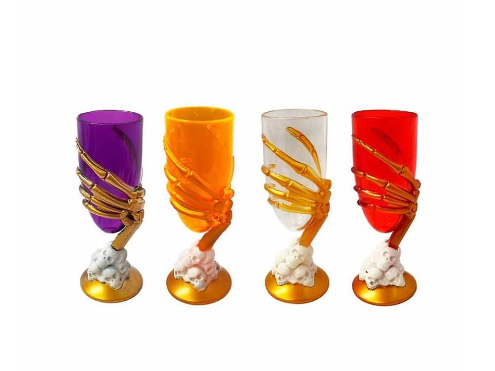 Design: A característica principal é a haste (pé) da taça, que é moldada como uma mão de esqueleto que envolve a taça, dando a impressão de estar a segurando.