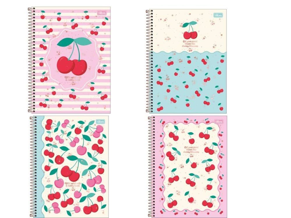 O Caderno Espiral Capa Dura Universitário 10 Matérias Amarena 160 Folhas da Tilibra é perfeito para você que busca uma opção para organização da rotina de estudos com visual de cerejas.