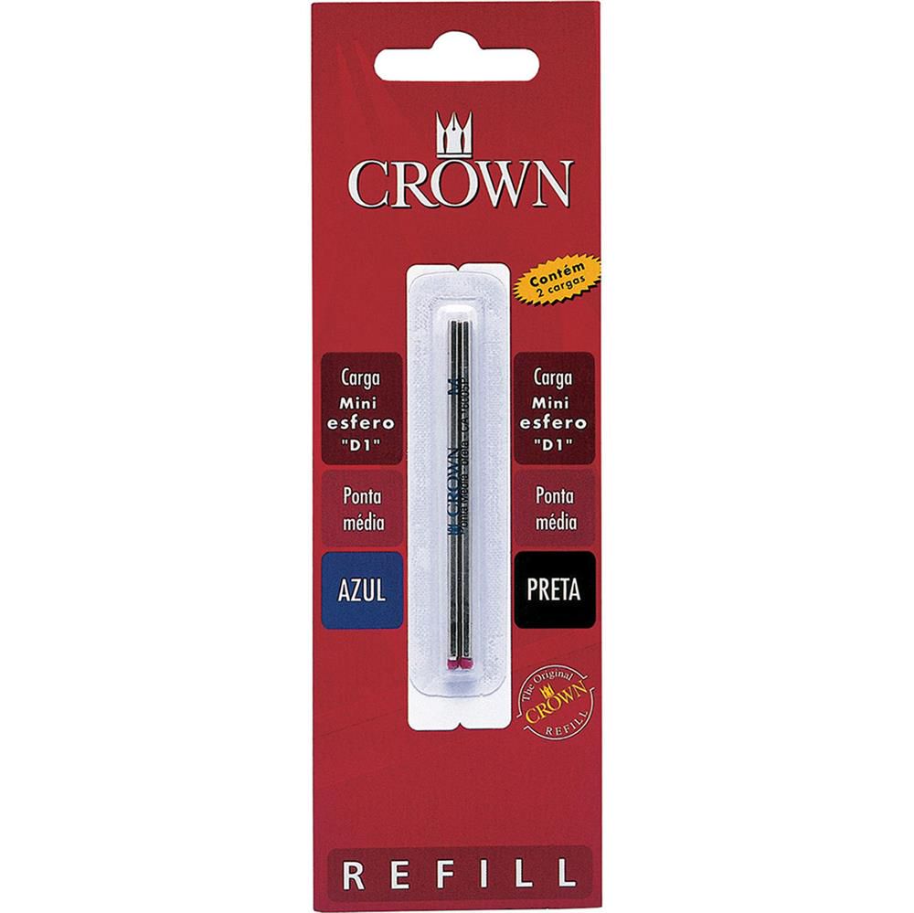 Carga Crown Esferográfica Azul e Preta Padrão Mini D1. Qualidade Suiça com Ponta Média (para canetas Cristal esferografica)