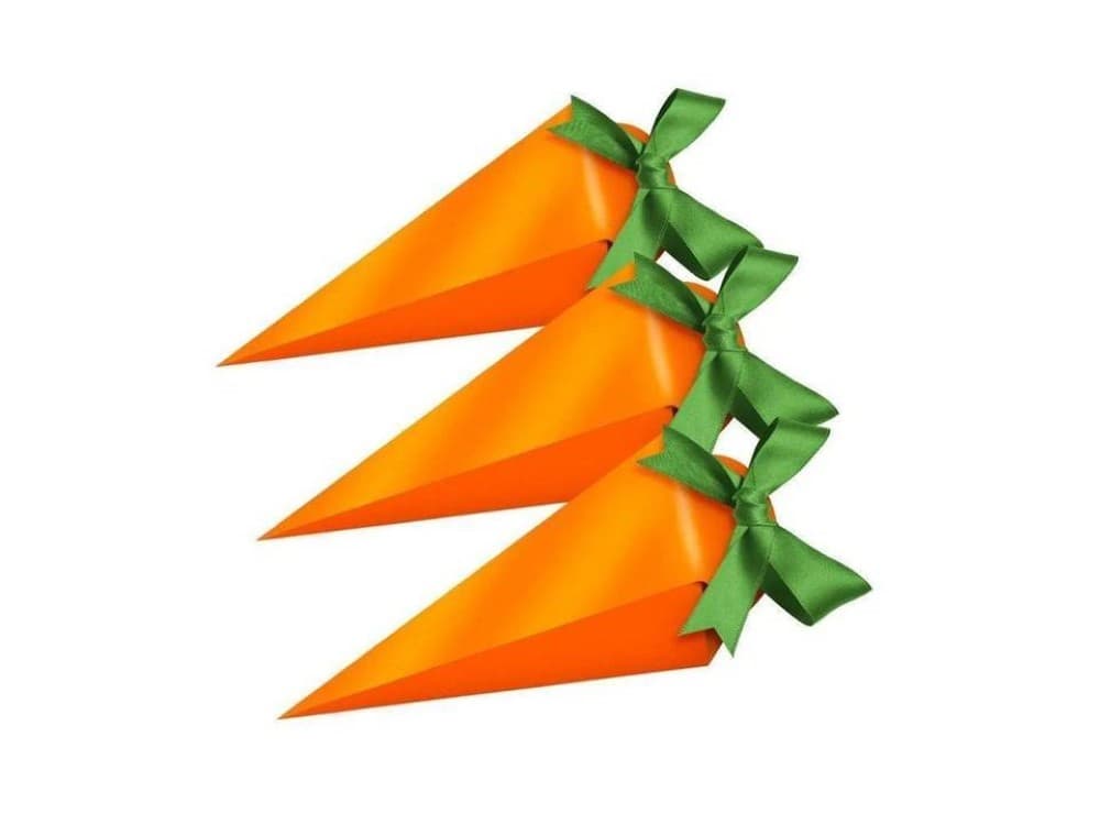 Caixa surpresa em formato de cenoura metalizada com fita, ideal para a temática de Páscoa e lembrancinhas festivas. A embalagem é pensada para surpreender convidados e presentear com estilo, combinando decoração e funcionalidade. A cenoura possui acabamento metalizado na cor laranja com laço de fita verde em cetim, criando um visual atrativo e festivo.
