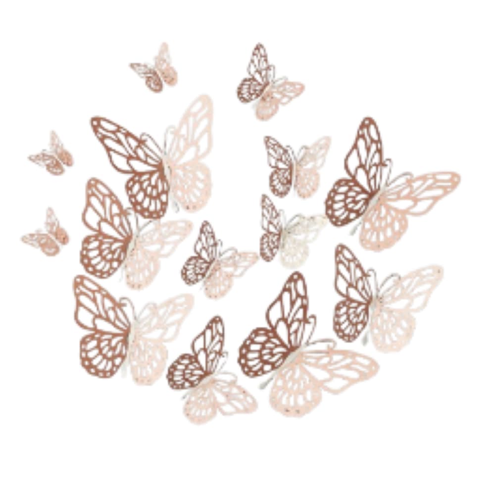 Adicione um toque sofisticado e delicado à sua decoração com este conjunto de borboletas vazadas decorativas na tendência elegante rose gold. Ideais para transformar qualquer festa ou evento em um cenário encantador.